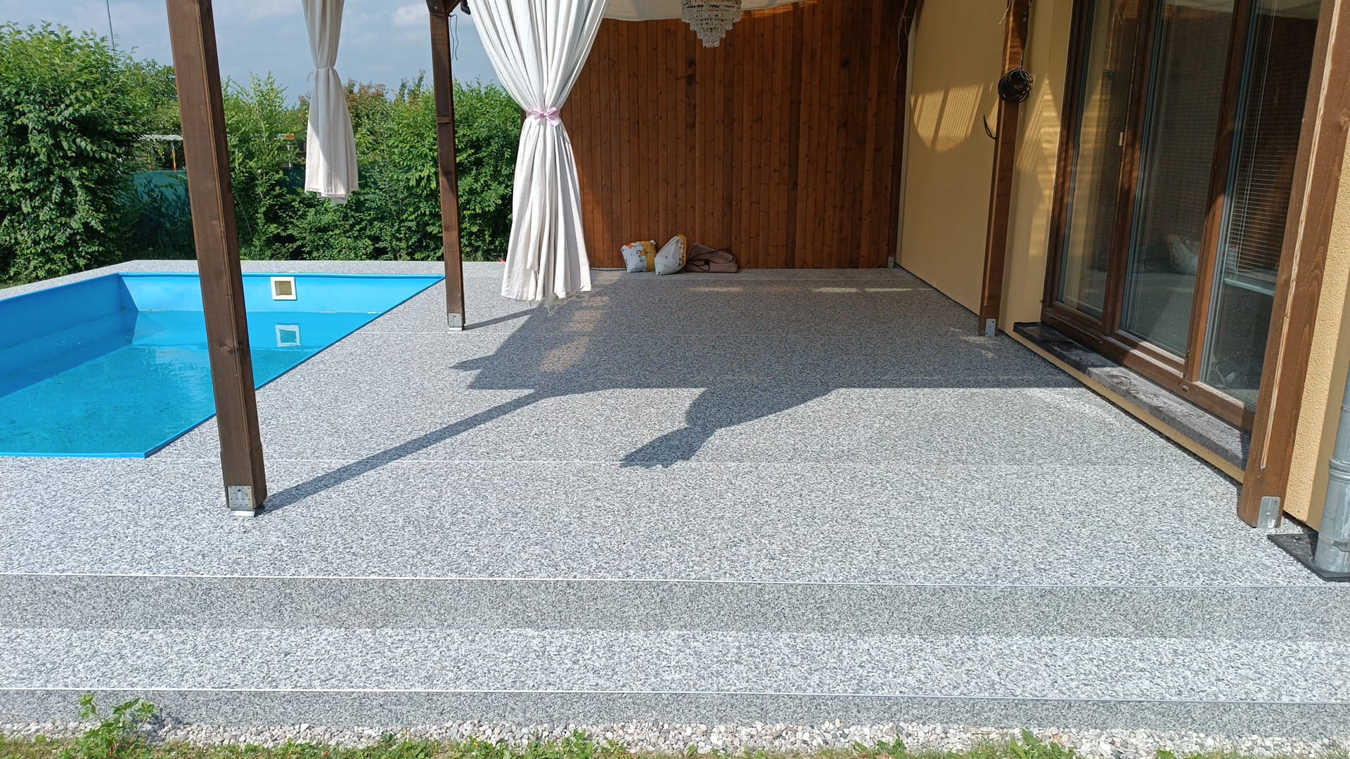 Podívejte se, jak může kamenný koberec proměnit exteriér i interiér. Realizujeme zakázky na míru od teras a schodišť až po příjezdové cesty nebo okolí bazénů.